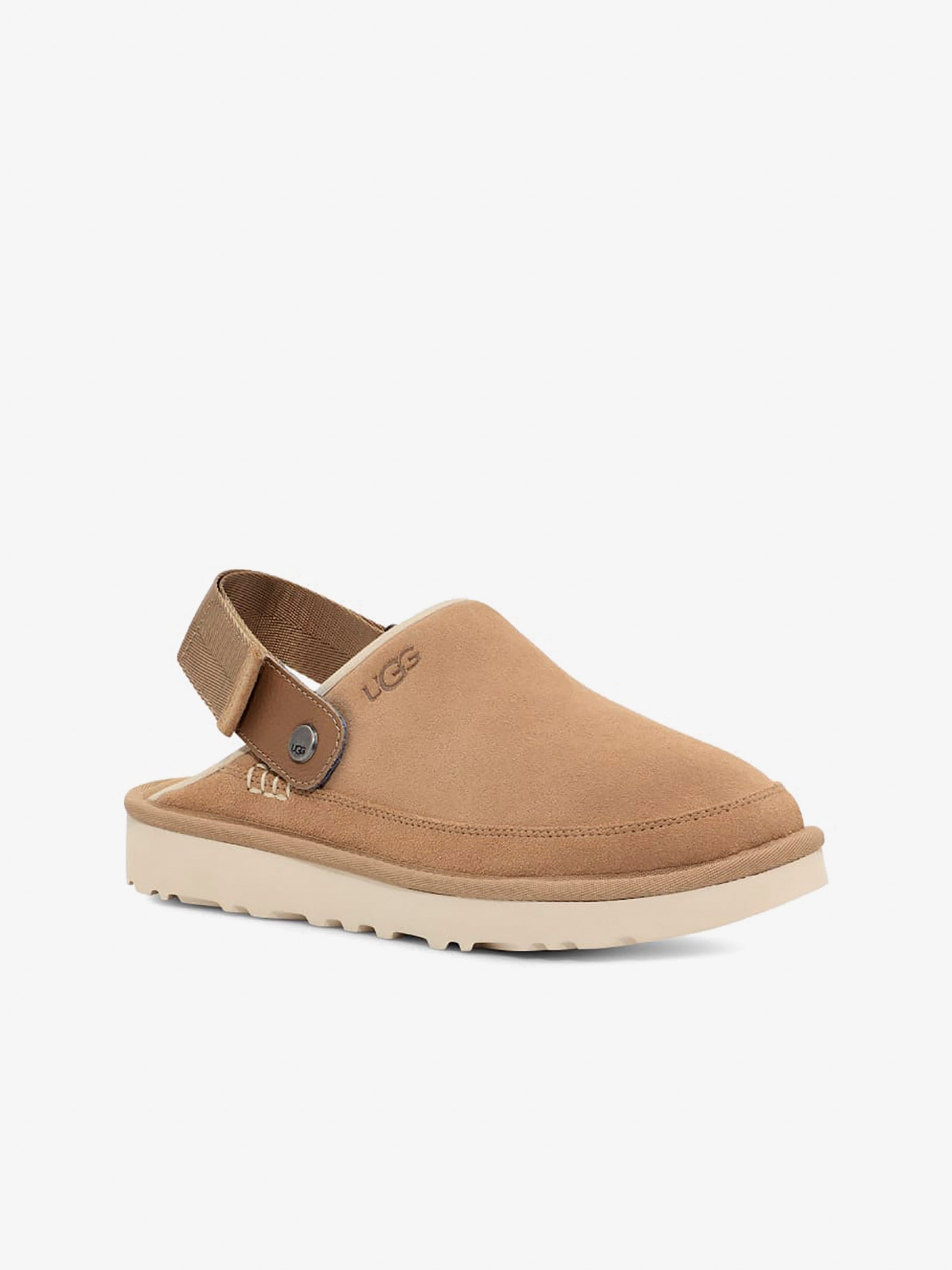 The Goldencoast 1142172 sand leather men's shoes son or a great choice for those looking for comfort and style. These sabots feature a high quality suede upper, which con gives them an elegant and sophisticated look. The incredibly lightweight sole ensures unparalleled comfort, making these sabots perfect for long walks or everyday use. The microfiber sole and foam insole offer on or an extra on cushioning and a on feeling of softness under the feet. The adjustable strap on the tallone and the velcro closure guaranteeono a perfect fit, adapting to your needs. These sabot sono made con high quality materials and sono equipped with metal details that addono a touch of style. The fabric lining is made of 100% recycled polyester fibers, making these sabot also an ecological choice. The sugar cane EVA sole offers a reliable and durableone look, while the UGG logo ® embossed hot print adds a touch of authenticity. Available in sand/beige/blue, these sabots have a smooth fit and son or perfect to complete your casual or elegant look.